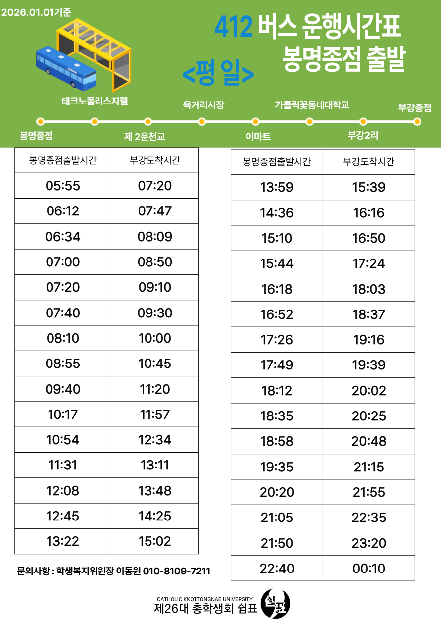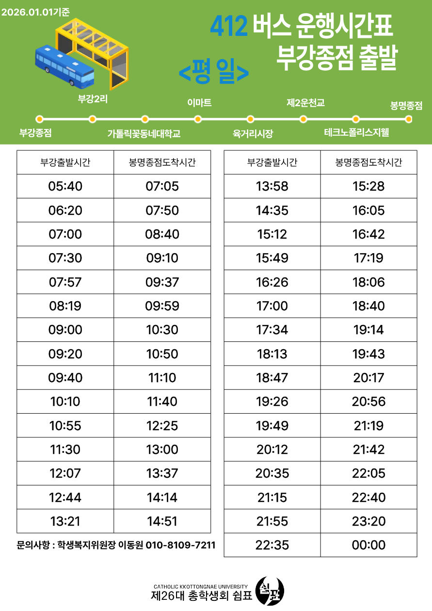 412번 버스 봉명종점 출발(평일)
