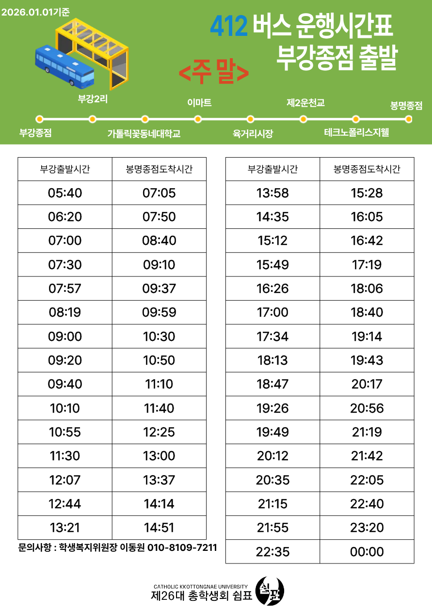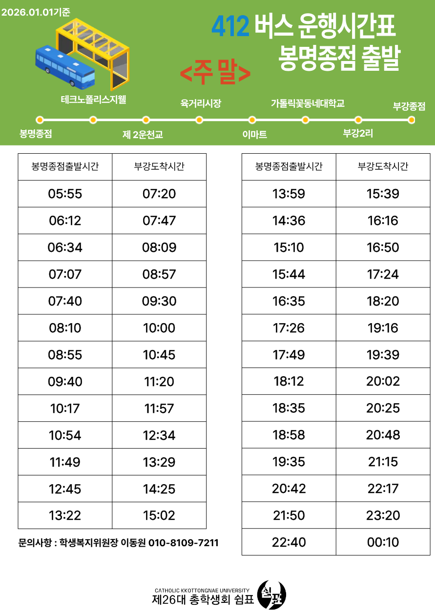 412번 버스 봉명종점 출발(주말)