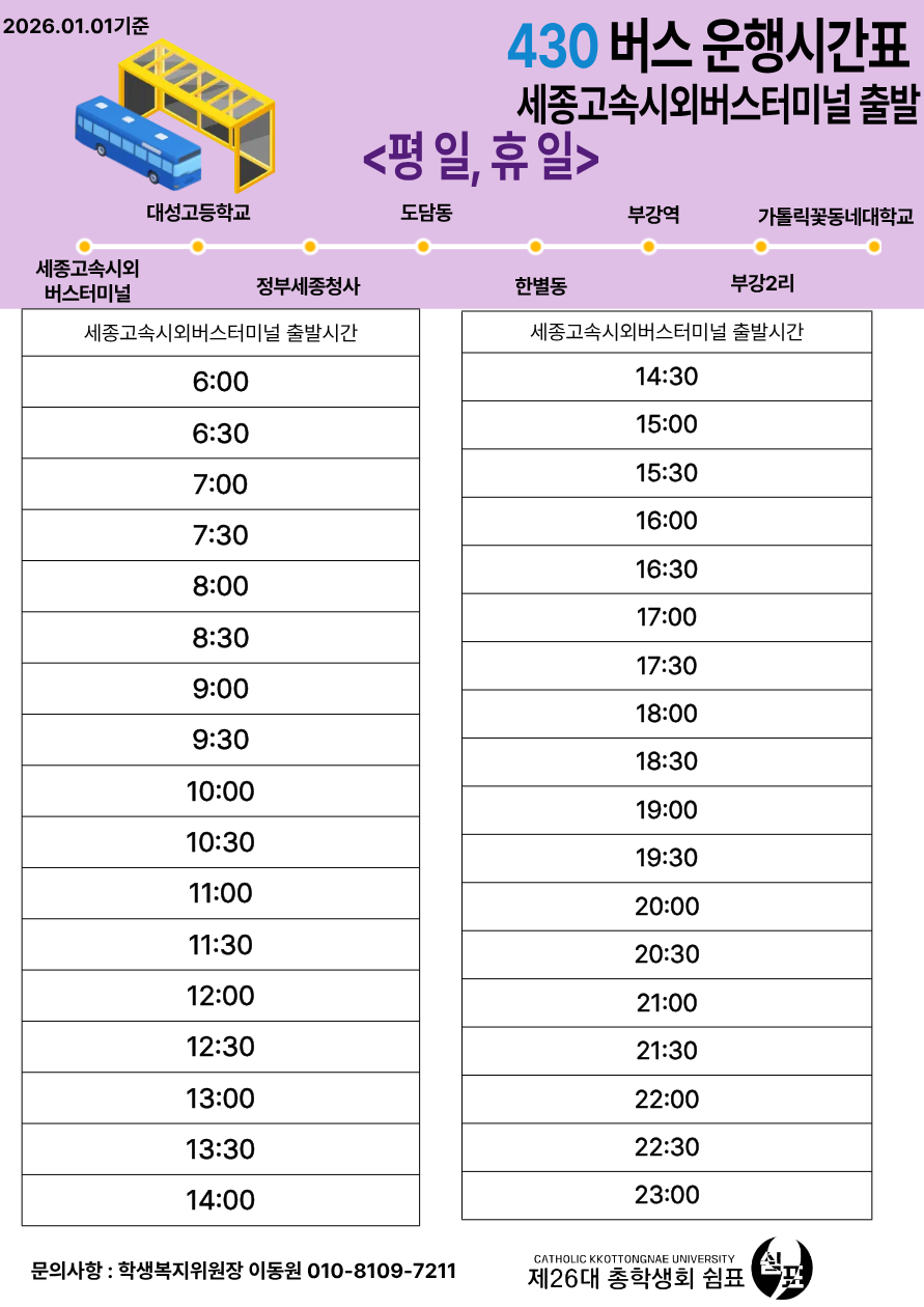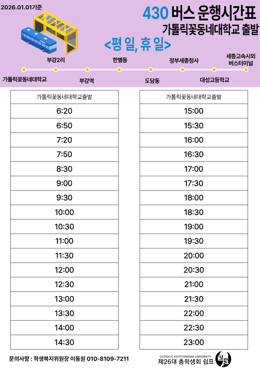 430번 버스 가톨릭꽃동네대학교 출발